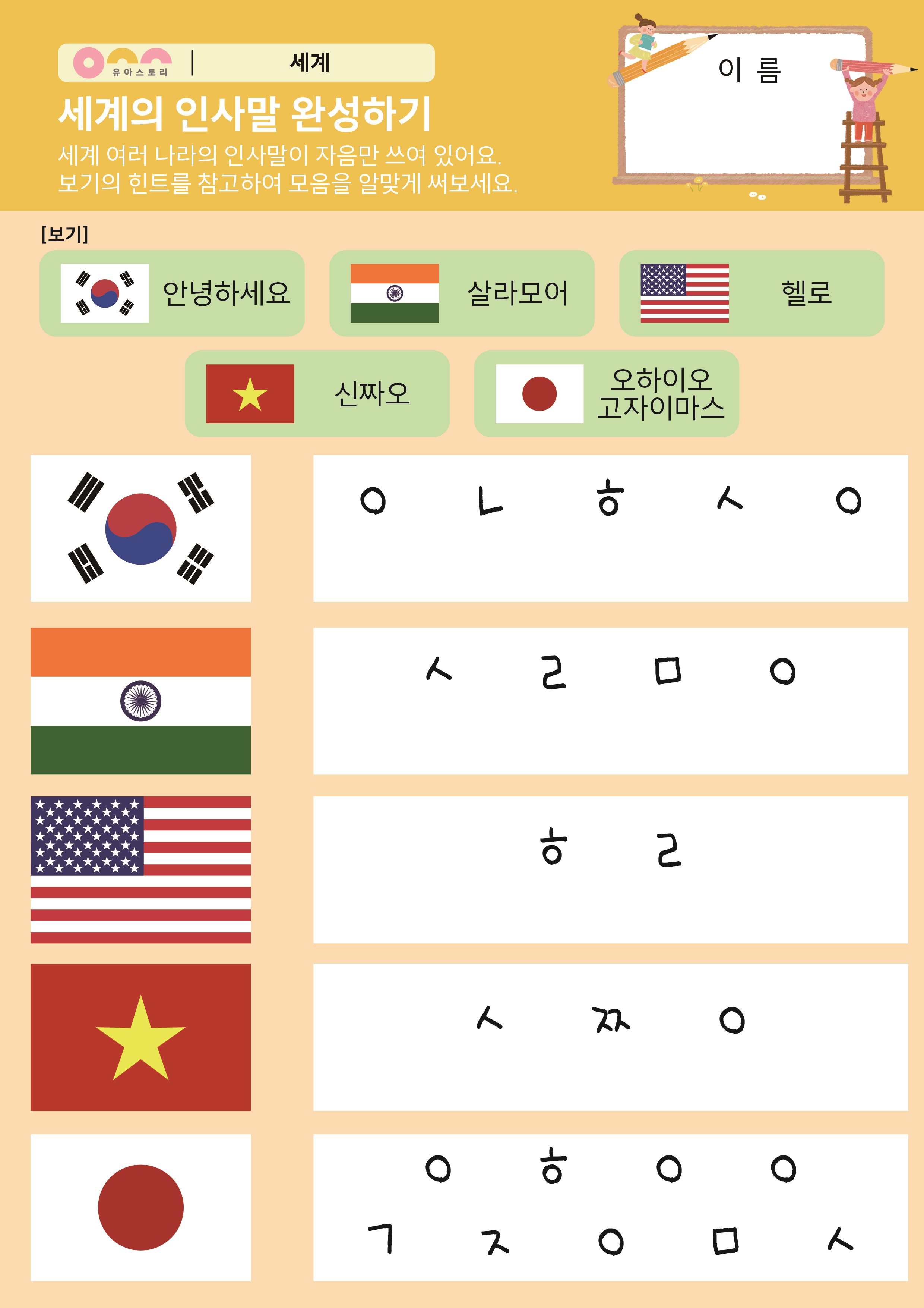 세계의 인사말 완성하기 활동지