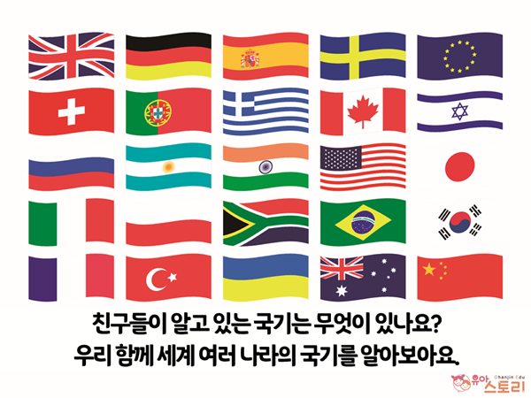 세계 여러 나라의 국기에 관심을 가지고 나라마다 다른 국기의 차이를 인식한다. |
