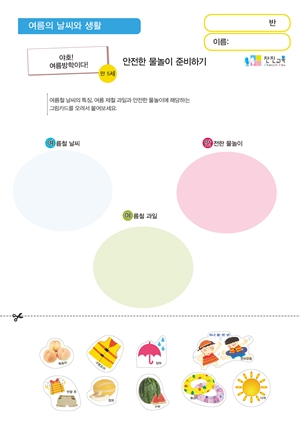 다양한 해양생물과 물에서 할 수 있는 놀이에 대해 알아보며 신나는 여름을 즐긴다. |