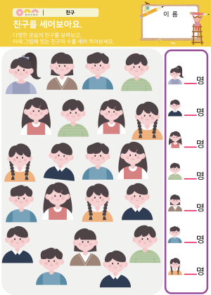 친구와 사이좋게 지내요. 만들기 친구를 세어보아요. 활동지 친구 픽셀아트 활동지 |