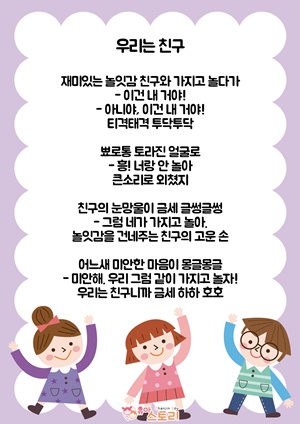 [동시] 우리는 친구 PPT , 활동지 [동화] 다 내꺼야! E-BOOK , PPT , 동요/음원 , 활동지 |
