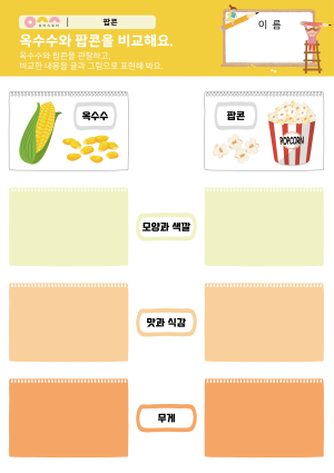 옥수수와 팝콘을 비교해요. 활동지 |