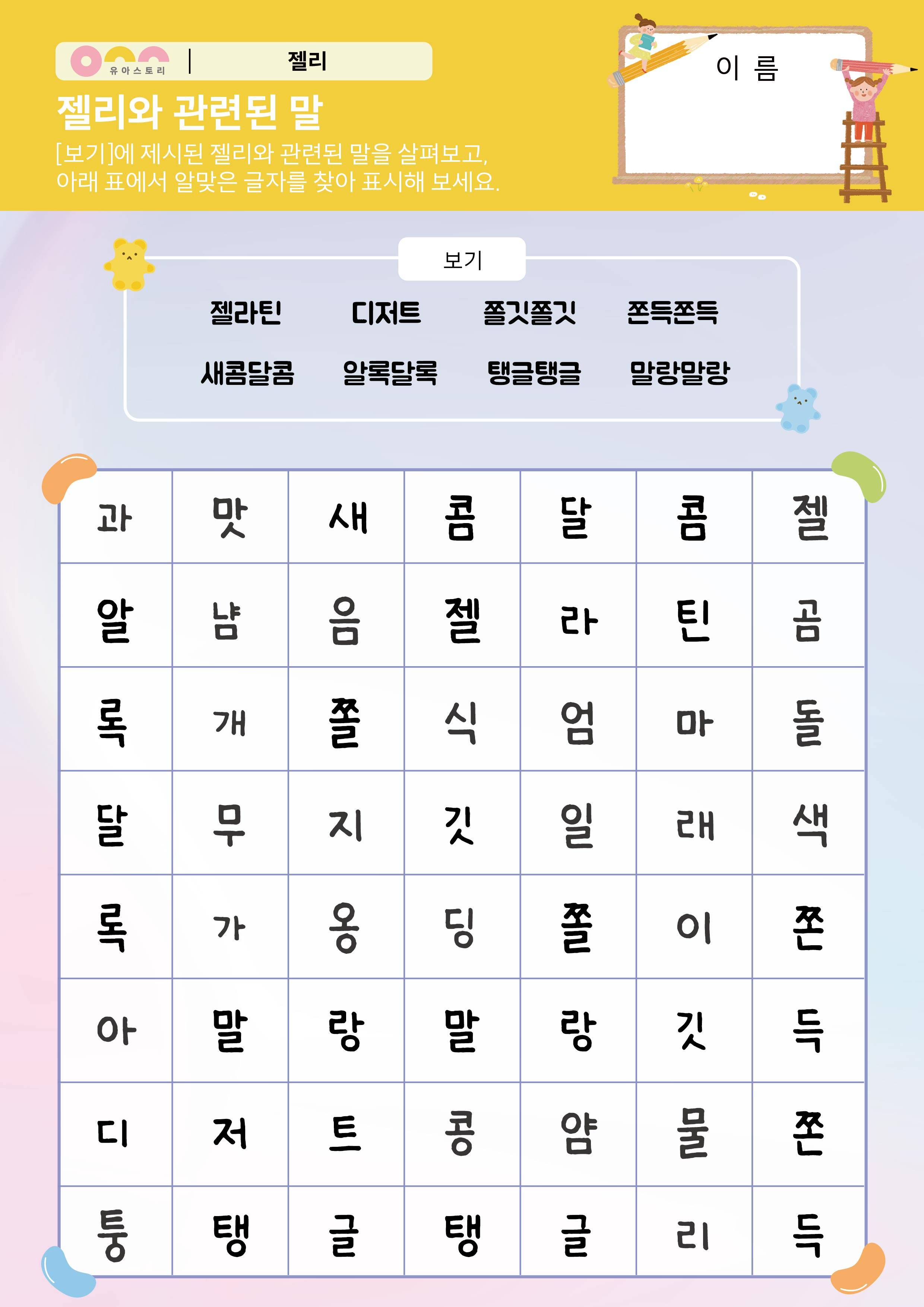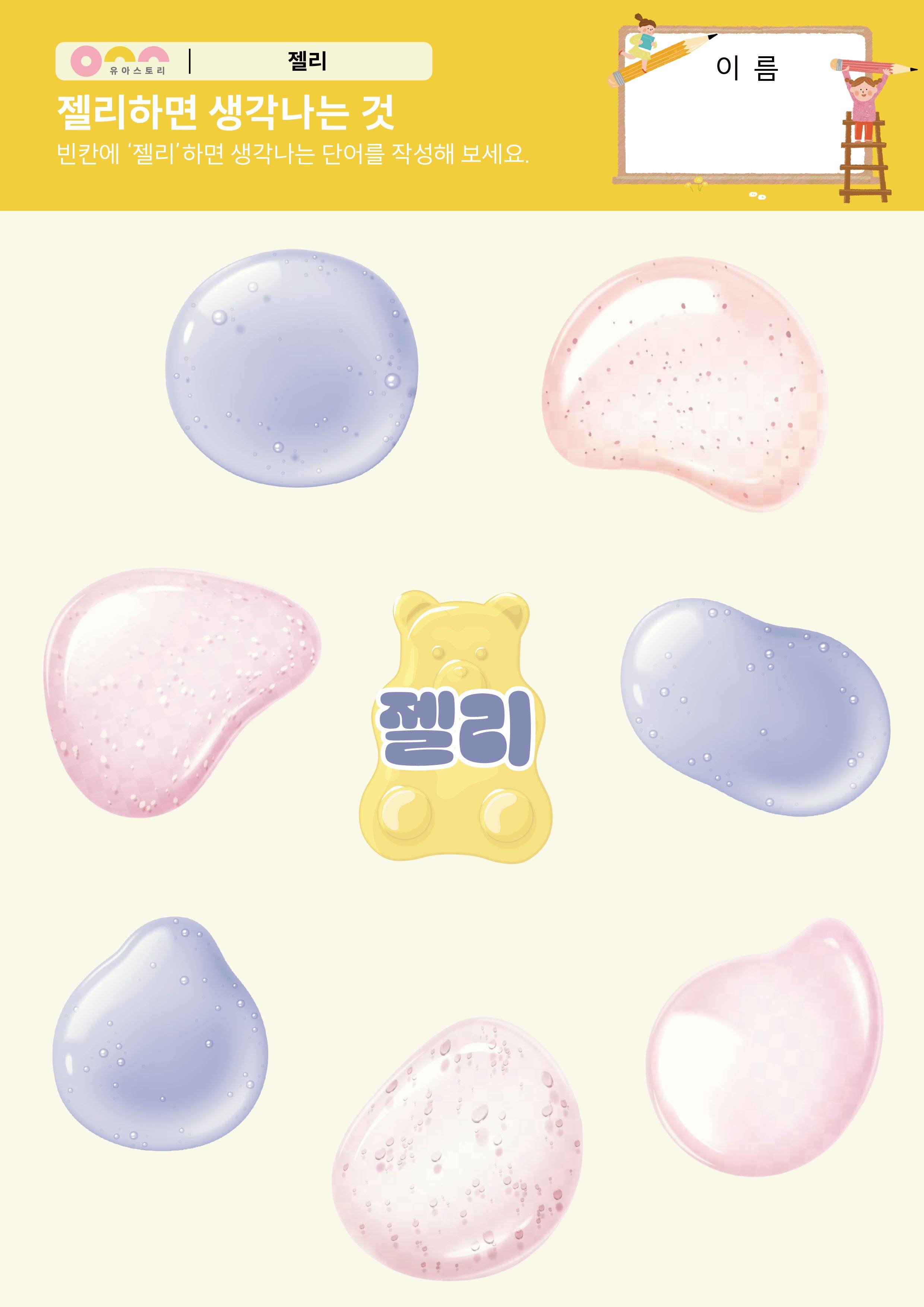 젤리와 관련된 말 활동지 젤리하면 생각나는 것 활동지 |
