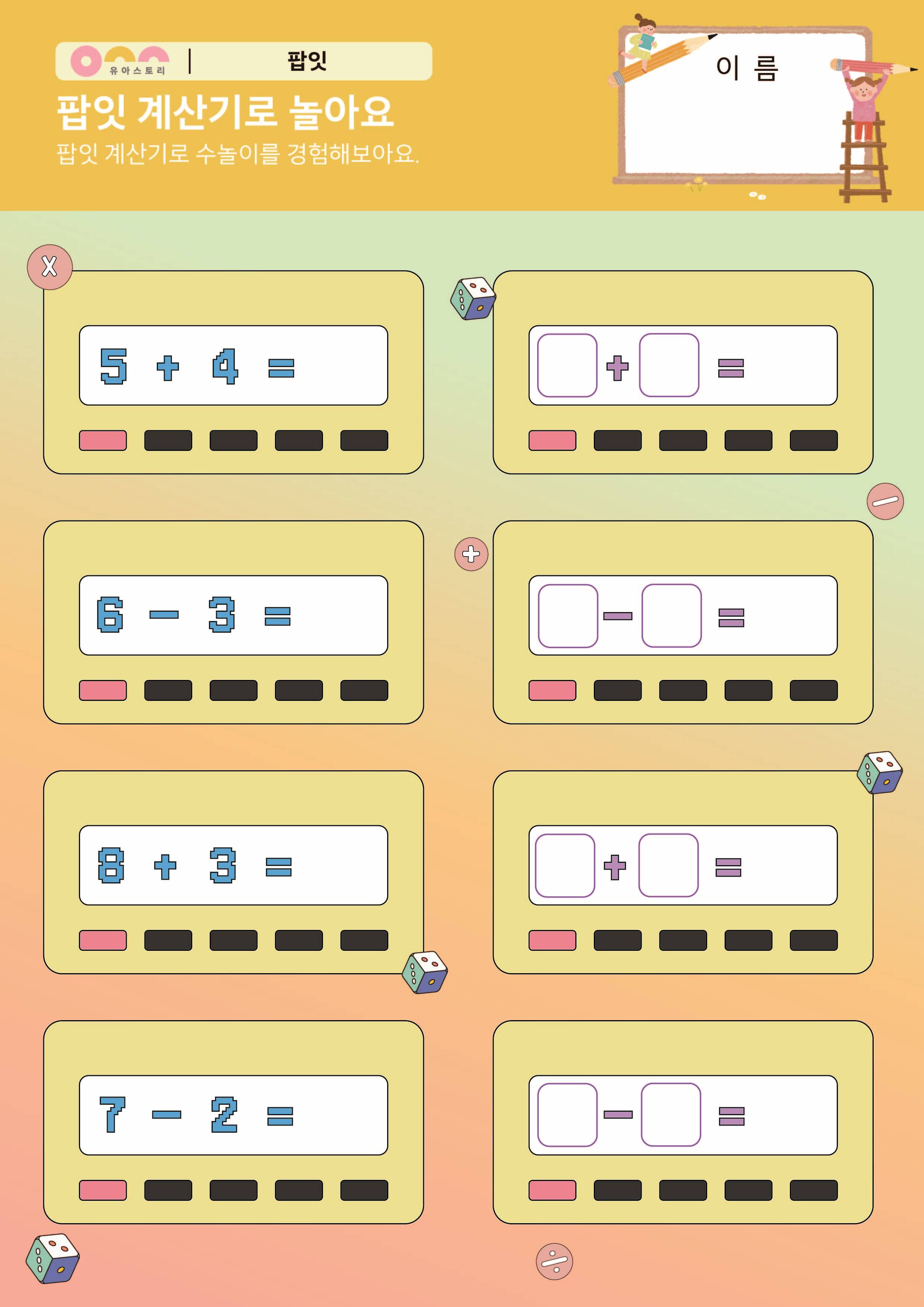 팝잇 계산기로 놀자 만들기 , 활동지 팝잇 패턴 이어그리기 활동지 |