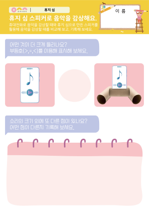 휴지 심 스피커로 음악을 감상해요. 사진 , 활동지 |