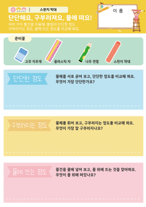 스펀지 막대의 특징을 탐색하고, 스펀지 막대를 활용한 다양한 놀이를 경험한다. |
