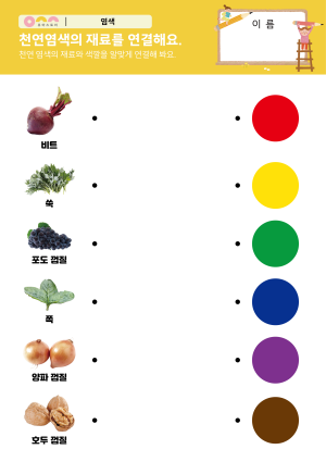 무슨 색이 될까? 활동지 천연염색의 재료를 연결해요. 활동지 |