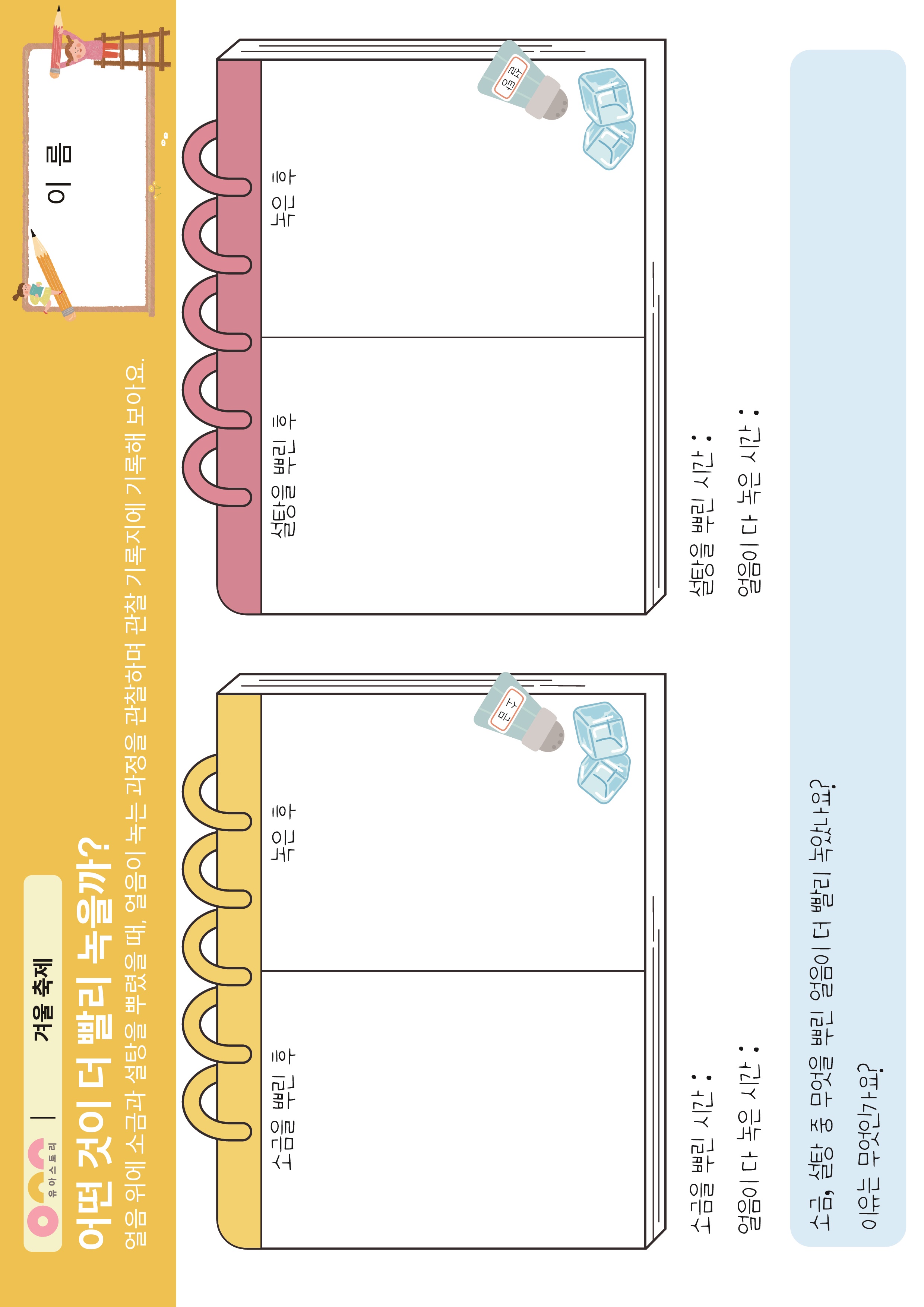 얼음 거즈 낚시 활동지 어떤 것이 더 빨리 녹을까? 활동지 |
