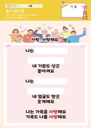 사랑이 뭐예요? PPT , 활동지 나라별 ‘사랑’은 이렇게 표현해요. PPT , 활동지 나와 가족을 사랑해요 PPT , 활동지 |