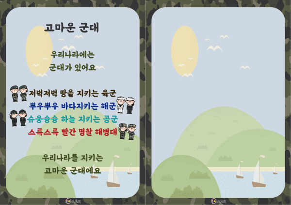 우리나라 군대의 종류를 알고 군대와 관련된 놀이를 해본다. |