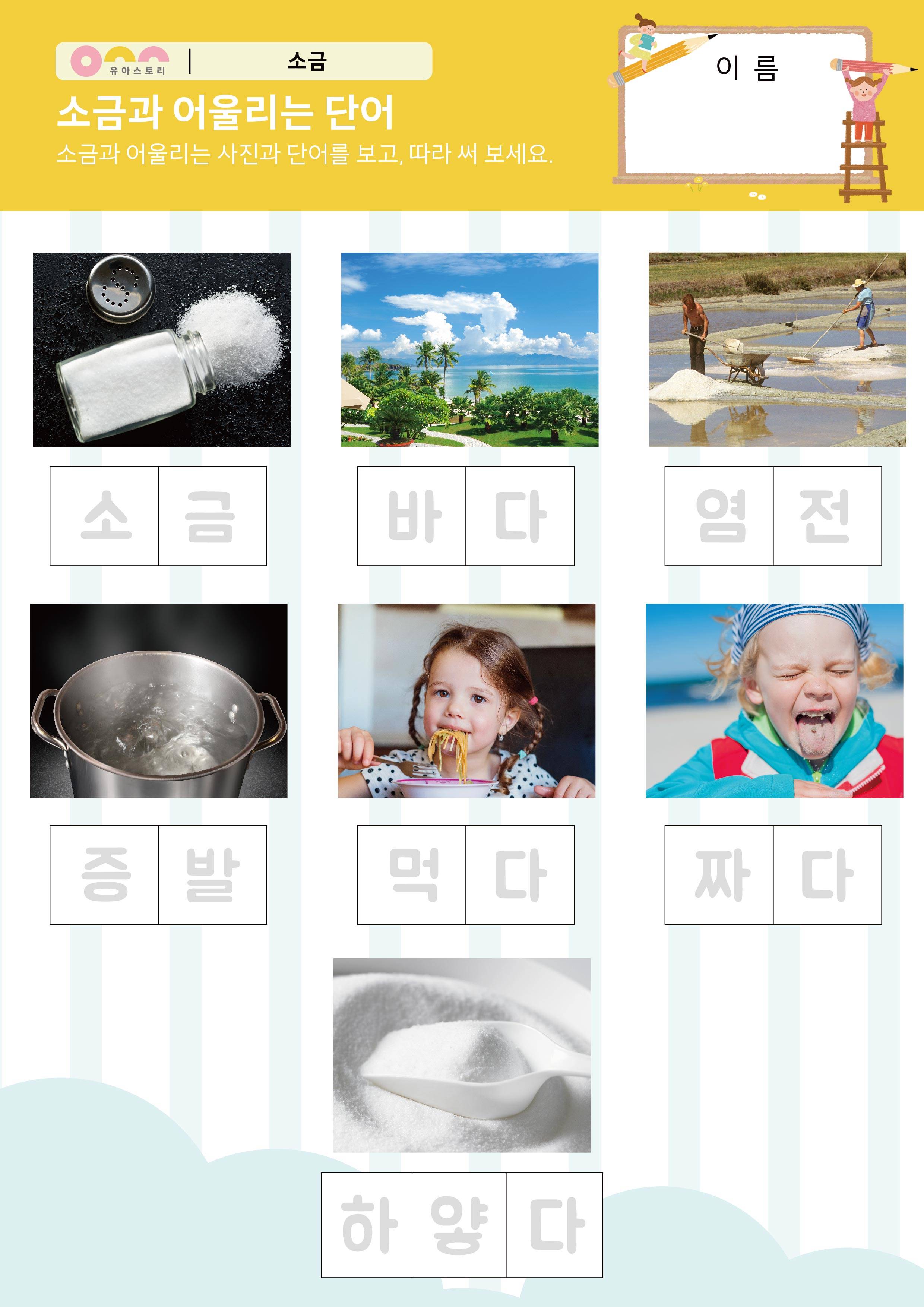 소금 이행시를 해요 활동지 소금과 어울리는 단어 활동지 |