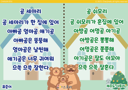 제주도 사투리로 부르는 ‘곰 세 마리’ 동요/음원 , PPT |
