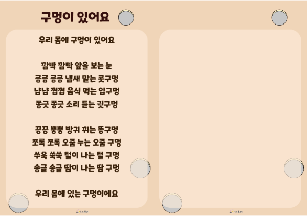 ‘구멍’ 하면 생각나는 것은? 활동지 우리 몸 구멍 작은 책 만들기 만들기 |