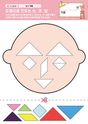 얼굴 픽셀아트 활동지 도형으로 만드는 눈, 코, 입 활동지 귓구멍을 청소해요 만들기 |
